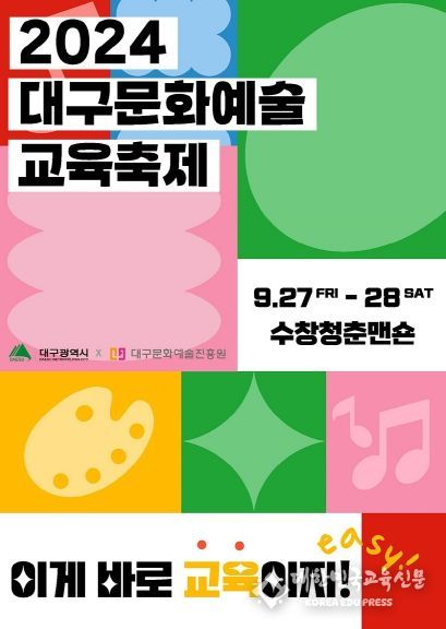 [대한민국교육신문] (재)대구문화예술진흥원 대구문화예술교육지원센터는 9월 27일부터 28일까지 이틀간 수창청춘맨숀에서 2024 대구문화예술교육축제 ‘이게 바로 교육이지(easy)!’를 개최한다.