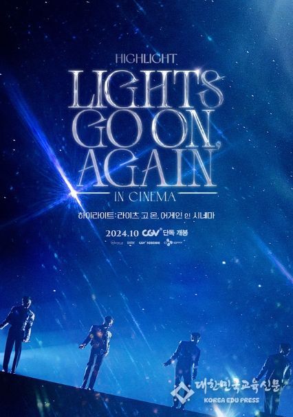[대한민국교육신문] 15년간 변함없는 음악과 무대로 팬들과 함께 뜨거운 서사를 써 내려간 하이라이트의 콘서트 실황 영화 '하이라이트: 라이츠 고 온, 어게인 인 시네마'이 하이라이트의 데뷔일인 10월 16일 개봉 소식을 알리며 티저 포스터를 공개했다.[감독: 오윤동ㅣ출연: 윤두준, 양요섭, 이기광, 손동운ㅣ제공: 어라운드어스ㅣ제작: CJ 4DPLEX, ScreenX Studioㅣ배급: CGV ICECON, CJ 4DPLEX]