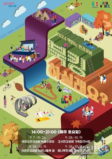 [대한민국교육신문] 지난해부터 열릴 때마다 1만 명 이상이 찾으며 인기를 끌어온 ‘책읽는 한강공원’이 올가을 더 크고 풍성해진다. 어린이·가족을 위한 체험 프로그램, 영화 상영, 토크쇼 등 한강공원이 2만여 권의 책을 비롯해 다양한 문화·예술을 즐기는 복합문화공간으로 재탄생한다.
