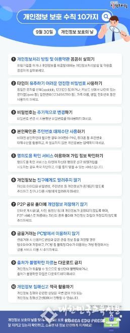 ※ 위 내용은 개 인정보포털 → 개인정보보호란? → 개인정보 수칙 →일반국민 내용을 토대로 작성했습니다.