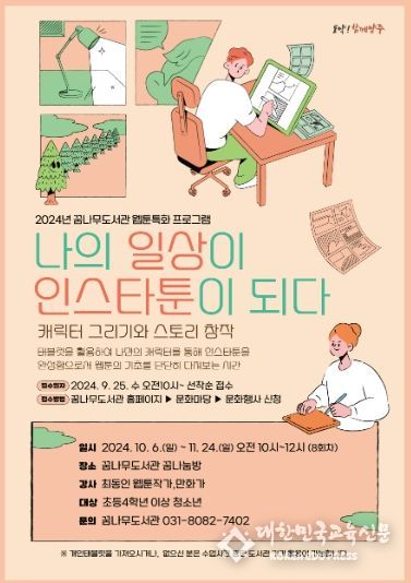 [대한민국교육신문] 양주시가 꿈나무도서관에서 2024년 특화프로그램 ‘나의 일상이 인스타툰이 되다’에 참여할 수강생을 선착순 모집 중이라고 밝혔다.