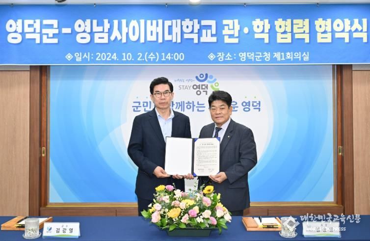 [대한민국교육신문] 영덕군과 영남사이버대학교가 지난 2일 영덕군청 제1회의실에서 ‘영덕군-영남사이버대 관․학 협력’에 관한 업무 협약을 체결했다.