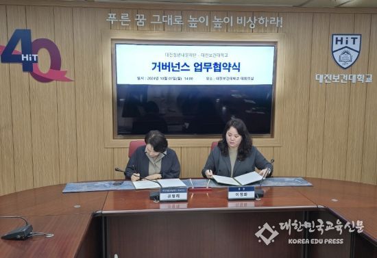 [대한민국교육신문] 대전청년내일재단과 대전보건대학교는 7일 보건대에서 ‘지역대학과 상생하는 영·유아교육 발전 및 지역청년 지원을 위한 업무협약’을 체결했다.