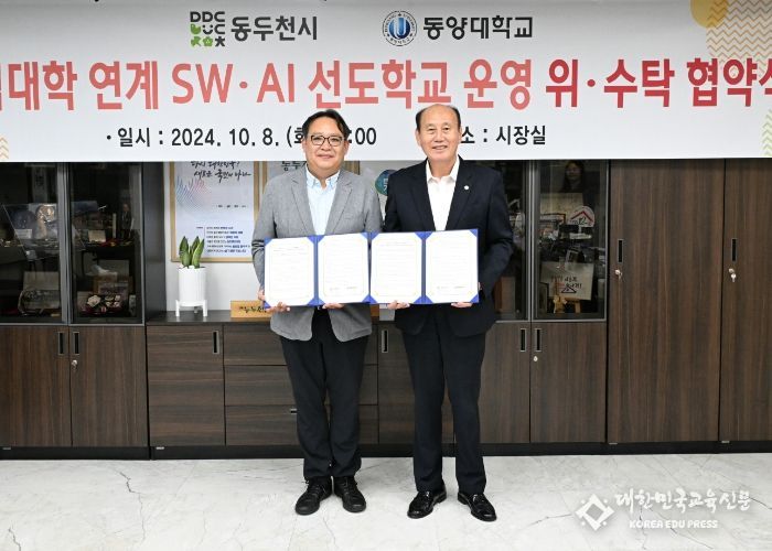 [대한민국교육신문] 동두천시는 지난 8일 박형덕 시장과 노경철 동양대학교 산학협력단장 등 10여 명이 참석한 가운데 지역대학 연계 SW·AI 선도학교 운영에 대한 위·수탁 협약을 체결했다.
