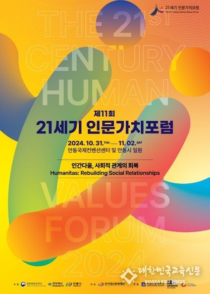 [대한민국교육신문] 제11회 21세기 인문가치포럼이 “인간다움, 사회적 관계의 회복”이라는 주제로 10월 31일부터 11월 2일까지 안동국제컨벤션센터에서 개최된다.
