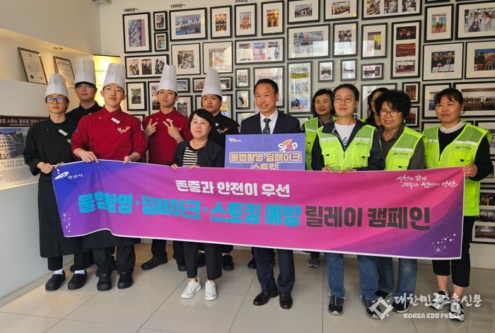 [대한민국교육신문] 안산시는 최근 한국호텔관광실용전문학교가 시에서 진행하고 있는 ‘불법촬영·딥페이크·스토킹 예방 릴레이 캠페인’에 동참했다고 12일 밝혔다.