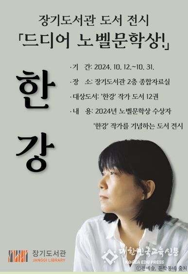 [대한민국교육신문] 김포시 장기도서관이 2024년 노벨문학상 수상자인 한강 작가를 기념해 ‘드디어 노벨문학상!’ 도서 전시를 개최한다.