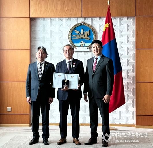 [대한민국교육신문] 경상국립대학교 사회과학대학 행정학과 최상한 교수는 10월 14일 몽골 정부 청사에서 오흐나 후렐수흐 몽골 대통령이 수여하는 ‘몽골 국가 최고 영예 우정 훈장’(몽골 대통령령 제81호)을 수훈했다.