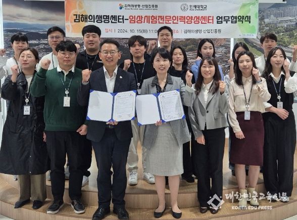 [대한민국교육신문] 김해의생명산업진흥원 김해의생명센터와 인제대학교 임상시험전문인력양성센터는 2024년 10월 15일, 진흥원에서 임상시험 전문 인력 양성 및 지역 의료기기 산업 발전을 위한 업무협약을 체결했다.