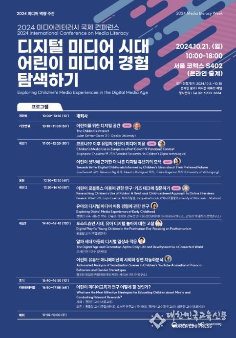 [대한민국교육신문] 어린이의 미디어 이용을 주제로 한 미디어 리터러시 국제 콘퍼런스가 국내 최초로 열린다.