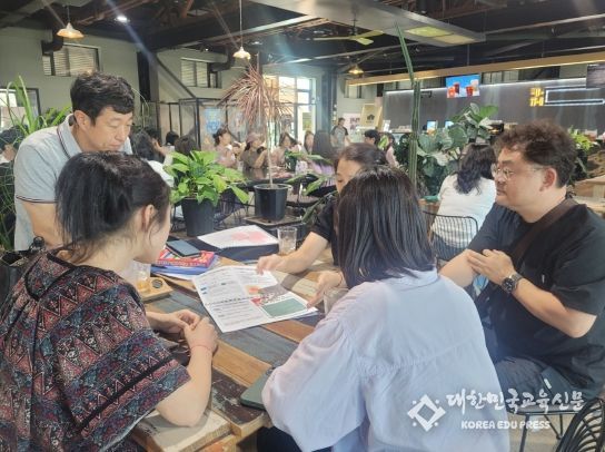 성과보고회는 소모임 연구 사례로 환경, 디지털 미디어 리터러시, 평화 등에 관한 수업 적용 사례 논의, 공정무역 키트 체험, 충북형 세계시민교육 교과서 개발 결과 발표 순으로 진행됐다.