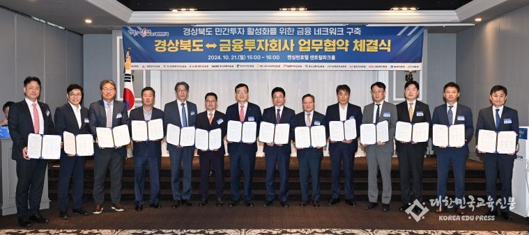 경상북도는 21일 서울 여의도 켄싱턴호텔에서 13개 금융투자회사와 ‘경상북도 민간투자 활성화를 위한 금융투자 네트워크 구축’업무협약을 체결했다.