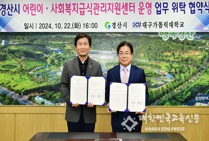 [대한민국교육신문] 경산시와 대구가톨릭대학교는 22일 경산시 어린이·사회복지급식관리지원센터 운영을 위한 업무 위탁 협약을 체결했다고 밝혔다.