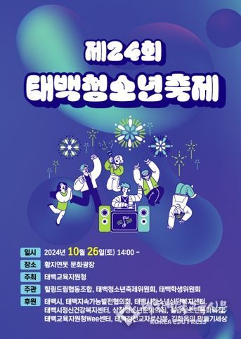 [대한민국교육신문] 태백교육지원청은 10월 26일 오후 2시 황지연못 문화광장에서 제24회 태백청소년축제를 개최한다.
