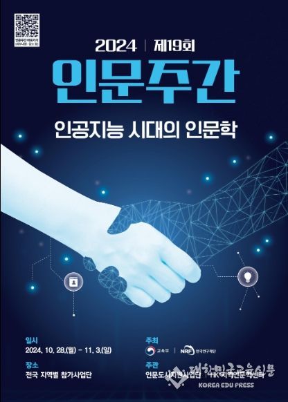 [대한민국교육신문] 교육부와 한국연구재단은 10월 28일부터 11월 3일까지 전국 40개 인문학 관련 기관과 함께 ‘제19회 인문주간’ 행사를 개최한다.
