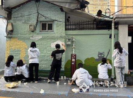 [대한민국교육신문] 서울 동대문구는 최근 동국대학교 봉사동아리 ‘페인터즈’와 함께 낡은 벽화를 새 단장해 도시미관을 개선했다고 5일 밝혔다.