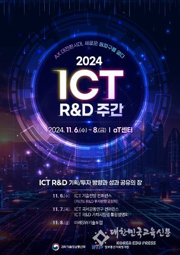 [대한민국교육신문] 과학기술정보통신부와 정보통신기획평가원(원장 홍진배)은 11월 6일부터 8일까지 3일간 서울 양재 aT센터에서'2024 정보통신기술 연구개발(ICT R·D) 주간'행사를 개최한다고 밝혔다.