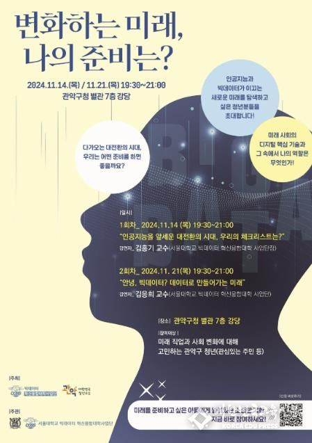 먼저 11월 14일과 11월 21일에는 관악구청 별관 7층 강당에서 19시 30분부터 21시까지 2회차에 걸쳐 강연이 진행될 예정이다.