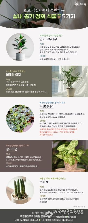 요리할 때 발생하는 일산화탄소를 제거하는데 우수하고, 어두운 공간에서도 잘 자랍니다.