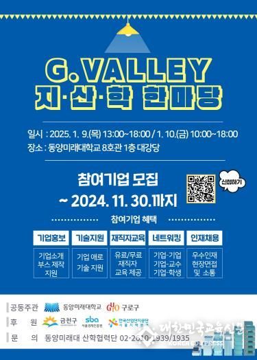 이번 ‘G밸리 지·산·학 한마당’은 구로구와 동양미래대학교가 공동으로 주관하고 금천구, 서울경제진흥원, 한국산업단지공단의 후원을 통해 내년에 처음으로 개최되는 행사다.