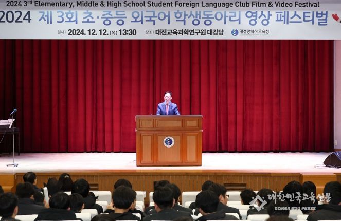 [대한민국교육신문] 대전시교육청은 12월 12일, 초·중등 외국어 동아리 학생, 지도교사, 참관 학생 및 학부모 등 약 250명이 참석한 가운데 ‘2024 제3회 초·중등 외국어 학생동아리 영상 페스티벌’을 성공적으로 개최했다고 밝혔다.