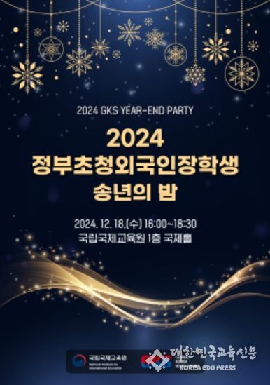 [대한민국교육신문] 교육부와 국립국제교육원은 12월 18일 국립국제교육원(경기도 성남시)에서 ‘2024년 정부초청 외국인장학생 송년의 밤’을 개최한다.