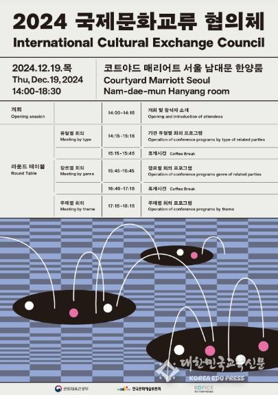 [대한민국교육신문] 문화체육관광부는 한국국제문화교류진흥원과 함께 12월 19일, 코트야드 메리어트 서울 남대문 호텔에서 ‘2024년 국제문화교류 협의체’ 워크숍을 개최한다.