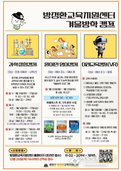 [대한민국교육신문] 중랑구 방정환 교육지원센터가 다가오는 2025년, 겨울방학을 맞아 학생들과 학부모를 위한 특별한 프로그램을 제공한다.