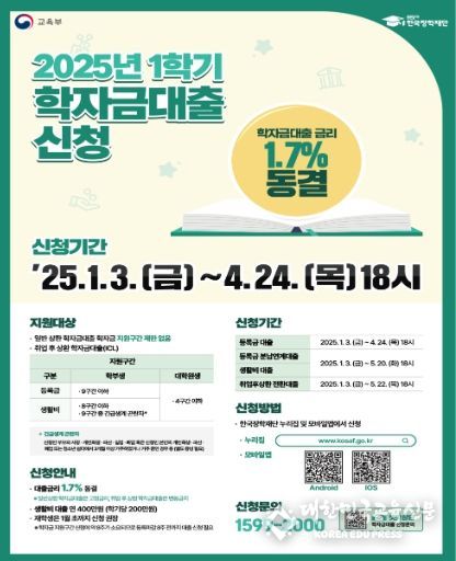 [대한민국교육신문] 교육부와 한국장학재단(이사장 배병일)은 1월 3일부터 2025학년도 1학기 학자금 대출 신청·접수를 받는다.