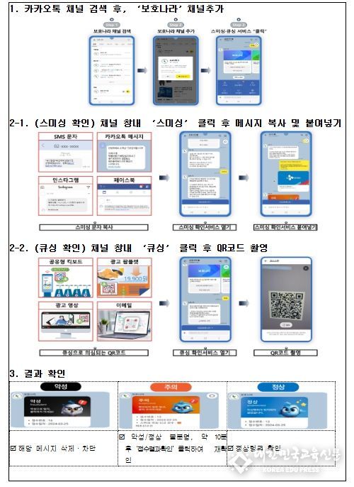 과학기술정보통신부와 한국인터넷진흥원은 설 연휴기간 동안 문자사기에 신속하게 대응할 수 있도록 24시간 탐지체계를 운영하고, 문자결제사기(스미싱·큐알코드 사기'큐싱')확인서비스 등을 통해 신고·접수된 문자사기 정보를 분석하여 금융사기 사이트, 악성 앱 유포지 등에 대한 긴급 차단조치를 지원하여 국민들의 피해를 최소화할 계획이다.