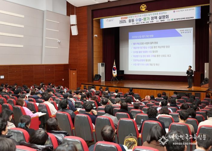 [대한민국교육신문] 대구시교육청은 2월 13일 13시 30분, 시교육청 행복관에서 중·고 수업-평가 담당 부장교사 250여 명을 대상으로 ‘2025학년도 중등 수업-평가 기본계획 설명회’를 개최한다.