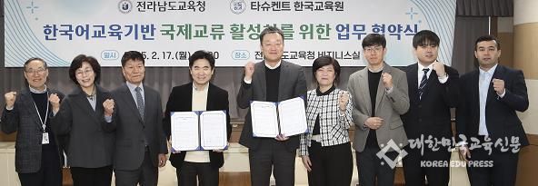 [대한민국교육신문] 전라남도교육청과 타슈켄트한국교육원은 17일 전라남도교육청 비즈니스실에서 고려인 후손 의교육 및 교육 지원 협력 강화를 위한 업무협약을 체결했다.