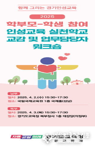도교육청은 오는 2일과 3일 인성교육 실천학교 118교(초 42교, 중 55교, 고 21교) 교감, 담당교사, 교육지원청 담당 장학사 등 260여 명을 대상으로 국립국제교육원(성남)과 도교육청 북부청사(의정부)에서 남북부 권역별 워크숍을 진행한다.