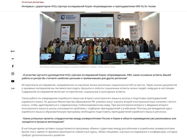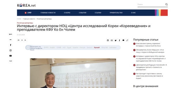 KOREA.NET (러시아)에 기사가 러시아어로 소개되었습니다.