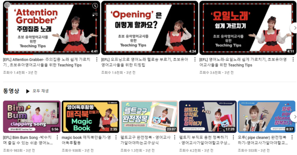 강의일정에 밀려서 유튜브 업로드를 못하고 지낸지 꽤 오래되었는데요. 주로 영어독서와 파닉스 지도에서 영어 선생님이나 학부모님들께 도움이 되는 부분들을 주제로 하고 있습니다. 예를 들어, 칼데콧 상이 무엇인지, 영어에서 운율(라임 rhyme)이 무엇인지부터 영어수업에서 필요한 오프닝 송이나 재미있는 챈트 지도법을 실제로 시연하며 가르치는 노하우등을 알려드리고 있습니다. 또한 영어수업을 할 때 활용하면 좋은 교구 아이디어 등 아동영어와 관련된 부분들에 관한 동영상입니다.