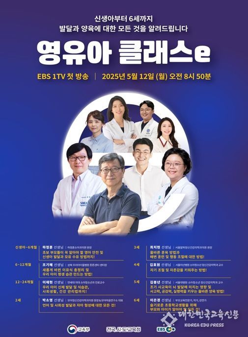 [대한민국교육신문] 교육부는 17개 시도교육청(주관: 경북) 및 한국교육방송공사(EBS)와 협력하여 영유아기 발달·양육에 대한 신뢰할 수 있는 정보 제공을 위해 '영유아 클래스e' 방송 콘텐츠를 제작하여 5월 12일부터 매주 월요일에 송출한다고 밝혔다.