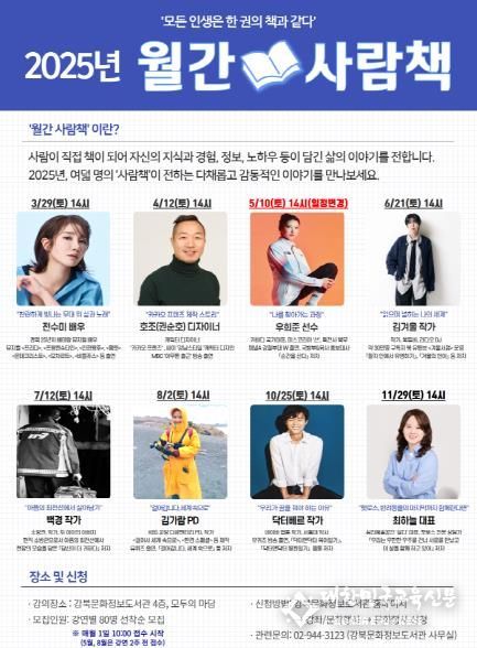 "책이 된 사람이 전하는 살아있는 이야기와 만나다" 강북문화정보도서관, '2025 월간 사람책' 강연 운영