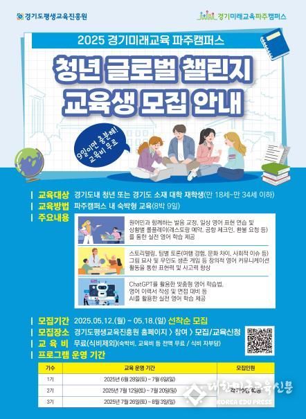 김재훈 경기도평생교육진흥원 파주본부장은 “청년 글로벌 챌린지를 통해 경기도 청년들이 실전 영어와 AI 활용 능력을 갖춘 인재로 성장하길 바란다”고 말했다.