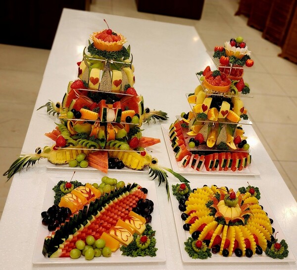 푸드 카빙이란 쉽게말해 과일과 채소에 조각하는 것을 말하는데요. 요즘은 단순히 배를 채우는 음식이 아닌 시각적으로 예쁜 음식을 추구하는 고객들이 늘어나고 있지요. 눈으로 먹는 시대라고 말해요. 그래서 음식 옆에 예쁘게 조각된 꽃이나 동물을 같이 세팅하기도 하고,별도로 화환대신 카빙 작품들로 그 행사만의 특별함을 나타낼 수 있는 세팅을 하기도 합니다. 수박엔 꽃과 글씨와 그림을 새길 수 있구요. 얼굴도 조각할 수가 있어요. 과일은 예쁘게 깎기를 하는데, 그냥 잘라 먹는 것보다 한 번 더 칼을대면 예쁘고 깔끔하게 정돈 되거든요, 보기 좋은 떡이 먹기도 좋다고 하지요. 그리고 무와 당근으론 백조 새 물고기 용 같은 동물들을 만들어요. 각종 채소들로는 꽃을 만들 수 있답니다. 어떤 꽃은 생화보다 더 예쁘게 만들기도 하지요. 그래서 푸드카빙은 내손에서 피어나는 예술이고, 식탁을 물들이는 예술이라고 표현하고 싶습니다.