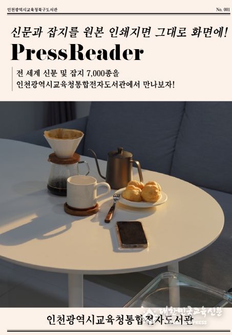 [대한민국교육신문] 인천광역시교육청북구도서관은 시민들에게 다양한 글로벌 콘텐츠를 제공하기 위해 전자신문·잡지 서비스 ‘프레스리더(PressReader)’를 새롭게 도입한다고 3일 밝혔다.