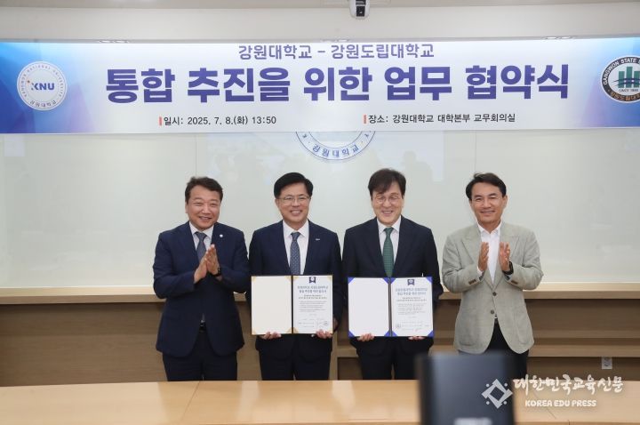 [대한민국교육신문] 오늘(7월 8일) 오후 2시, 강원대학교에서 강원대-강릉원주대-강원도립대 간 통합 추진을 위한 업무협약(MOU)이 체결됐다.