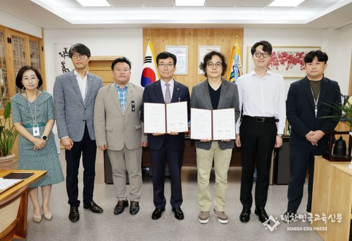 [대한민국교육신문] 충청북도교육청은 14일, 교육감실에서 교사들이 콘텐츠 제작 도구로 활발히 활용하고 있는 미리캔버스를 서비스하고 있는 우리나라 대표적인 에듀테크 기업인 (주)미리디와 업무협약을 체결했다.