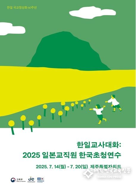 [대한민국교육신문] 교육부는 제주특별자치도교육청(교육감 김광수) 및 유네스코한국위원회(사무총장 직무대행 윤병순)와 함께 7월 14일부터 7월 20일까지 ‘2025 일본 교직원 한국 초청 연수(‘한일 교사 대화’)’를 개최한다고 밝혔다.
