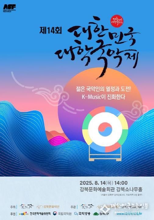 [대한민국교육신문] 젊은 국악인들의 등용문인 ‘2025년 대한민국 대학국악제’가 오는 8월 14일 강북문화예술회관 강북소나무홀에서 열린다.