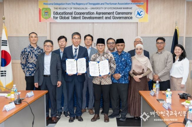 [대한민국교육신문] 경남도립남해대학(총장 노영식)은 22일 오후 2시 남해대학 혁신학습지원실에서 인도네시아 동자바주 뜨렌갈렉 군청과 글로벌 인재 양성 및 해외 거점기관 확보를 위한 상호협약(MOU)을 체결했다고 밝혔다.