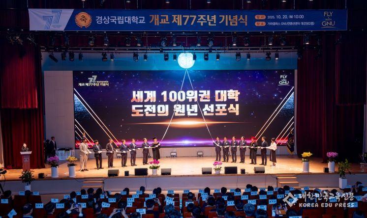 [대한민국교육신문] 경상국립대학교는 10월 20일 오전 10시 가좌캠퍼스 GNU컨벤션센터 2층 대강당에서 개교 77주년 기념식을 개최했다.