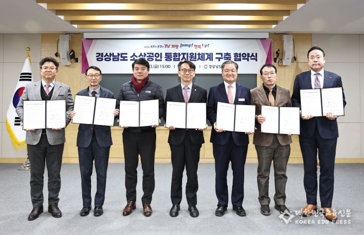 [대한민국교육신문] 경상남도는 23일 도청 도정회의실에서 도내 소상공인 지원 6개 유관기관‧단체와 함께 소상공인 통합지원체계 구축을 위한 업무협약(MOU)을 체결하고, 소상공인에 대한 원스톱 지원체계를 본격 추진한다고 밝혔다.