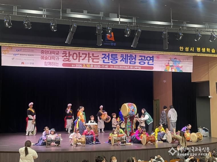 [대한민국교육신문] 안성시는 2월 10일 오전 10시 안성시평생학습관 2층 다목적실에서 열린 ‘찾아가는 전통 체험 공연 시즌 2 – 춤과 연희가 함께하는 무대’가 150여 명의 시민이 함께한 가운데 큰 호응 속에 성황리에 마무리됐다고 밝혔다.