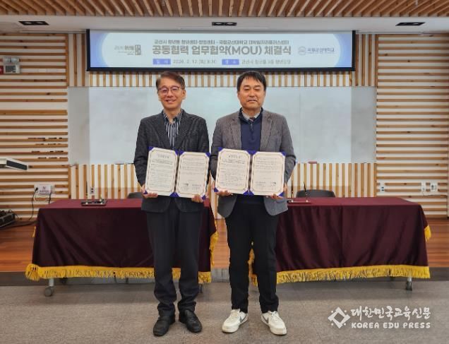 [대한민국교육신문] 군산시 청년뜰(청년센터·창업센터)과 국립군산대학교 대학일자리플러스센터가 국립군산대학교 재학생·졸업생을 포함한 지역 청년들에게 실질적인 취업 지원 서비스를 제공하기 위한 업무협약(MOU)을 12일 체결했다
