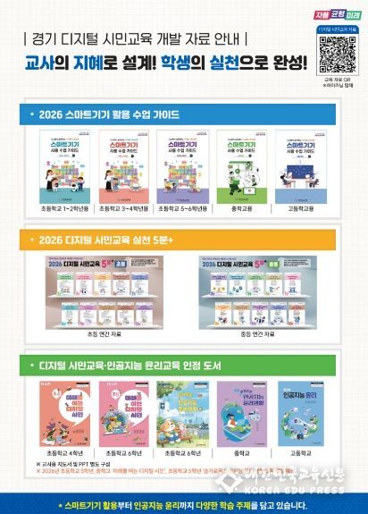 [대한민국교육신문] 경기도교육청이 교사의 주도적 수업 설계와 학생 실천 중심 학습 지원을 위한 ‘2026 경기 디지털 시민교육 개발 자료’를 보급한다.